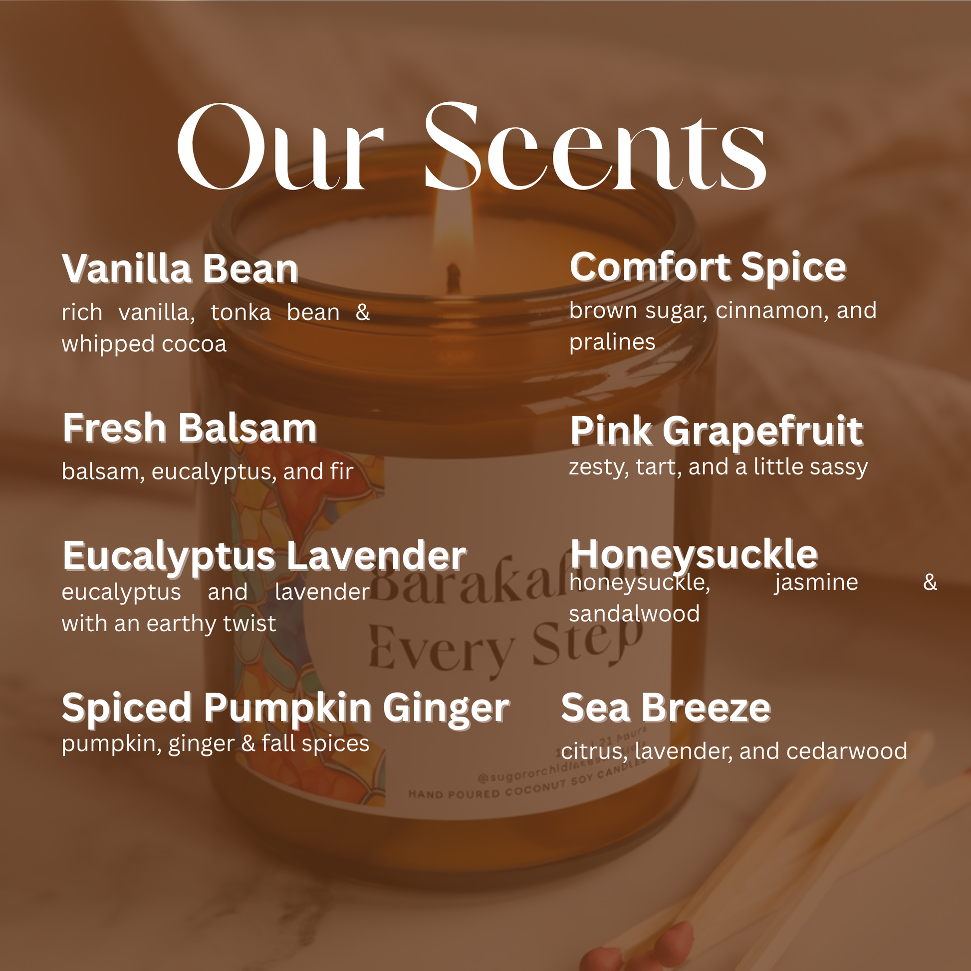 "3-Month Candle Subscription . The surprise scents are thoughtfully curated, long-lasting, and the Islamic affirmations on the labels add so much heart to my space. Burn is clean, no soot, and the throw fills my apartment. Customer service was warm and quick. 10/10.”